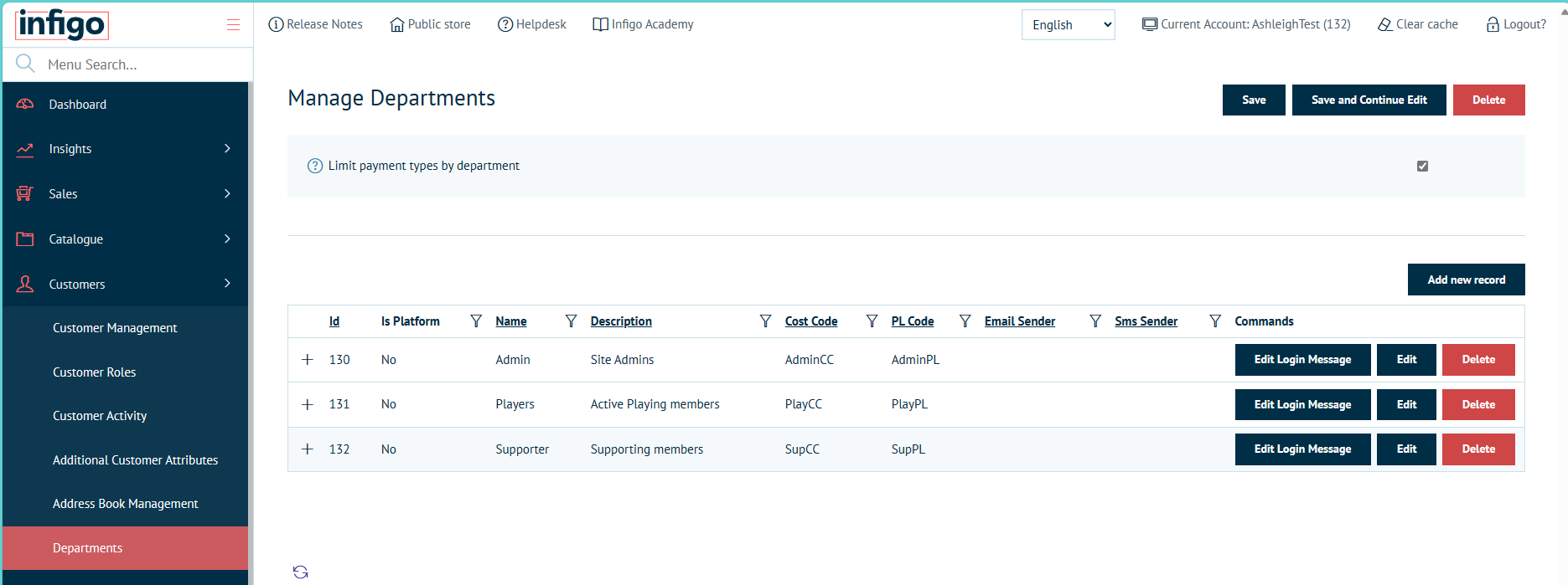 Should you require the customers in the CSV file to be uploaded into departments, these departments must already exist on the system, otherwise may cause the CSV file to fail and must follow the exact format of how the department is named on the system.
